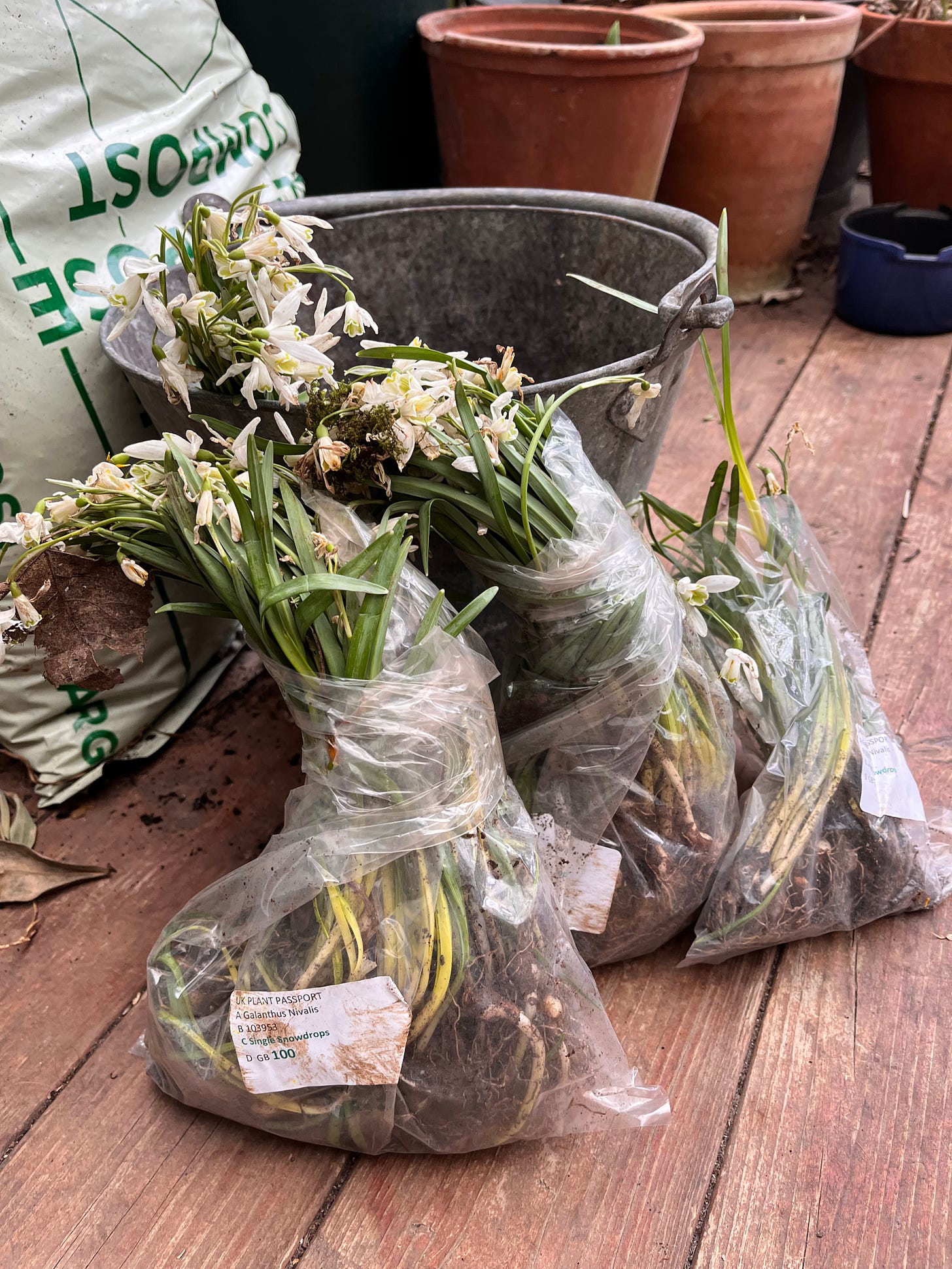 I do not have snowdrops in my garden and every year I feel left out when everyone else here starts talking about spotting their first snowdrop and I haven’t seen a single one. Every year I intend to do something about it and every year I don’t…until this year! I am sure you all know this but you have to buy snowdrops ‘in the green’ rather than as dry bulbs, because they are woodland plants of damp places, rather than originating in places where the soil is baked every summer. This is I think the reason I never get around to it - my head is not in a blub planting place at this time of year. Anyway I did it! 500 bulbs, around 250 of which are now planted in my back garden, and 250 of which will soon be planted in my front garden. Next February I will be rich in snowdrops.